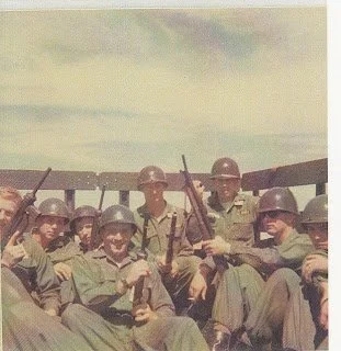 Howard Wahlen, third from the right, in a truck on the way to the firing range at White Sands Missile Range.